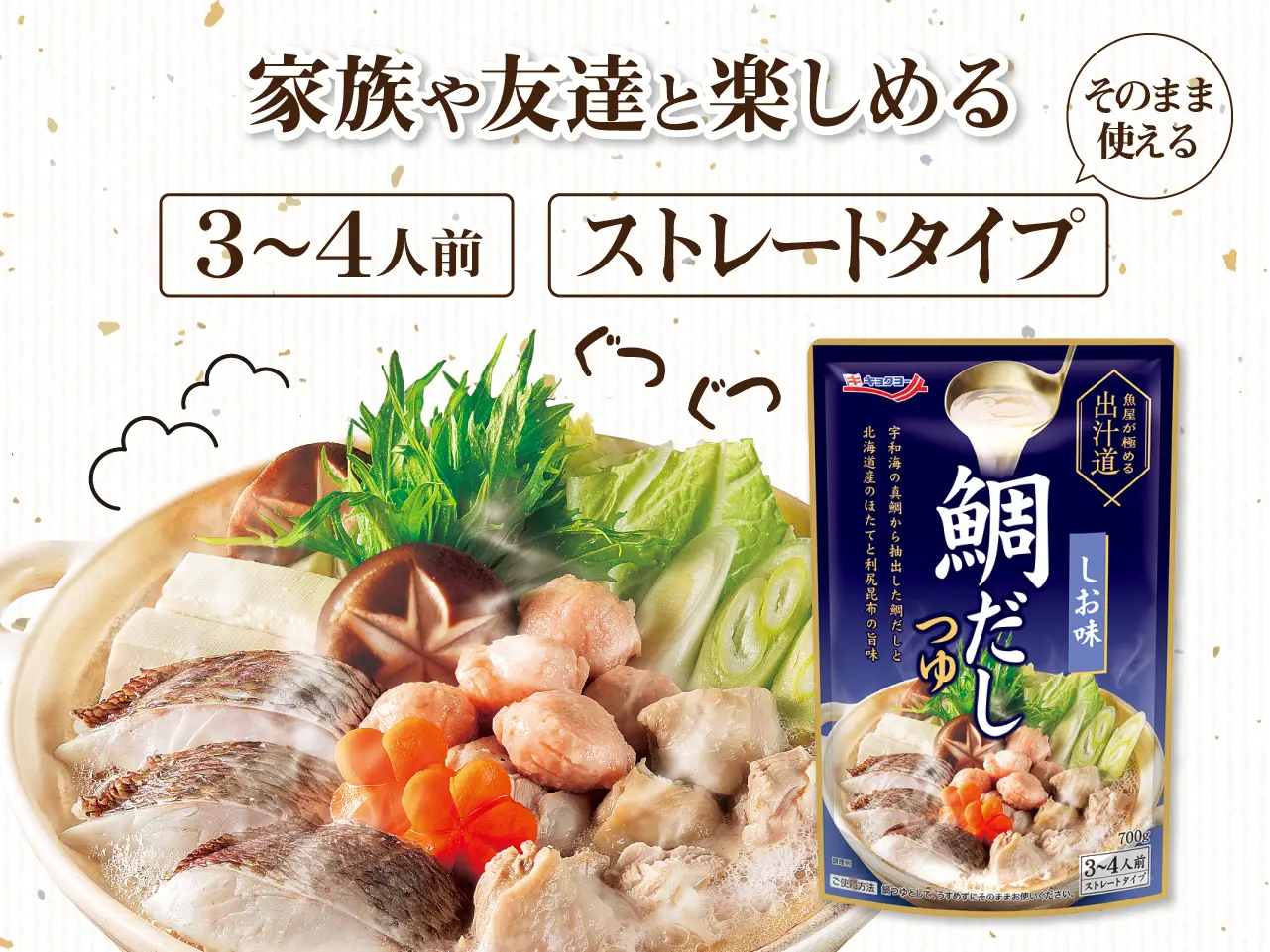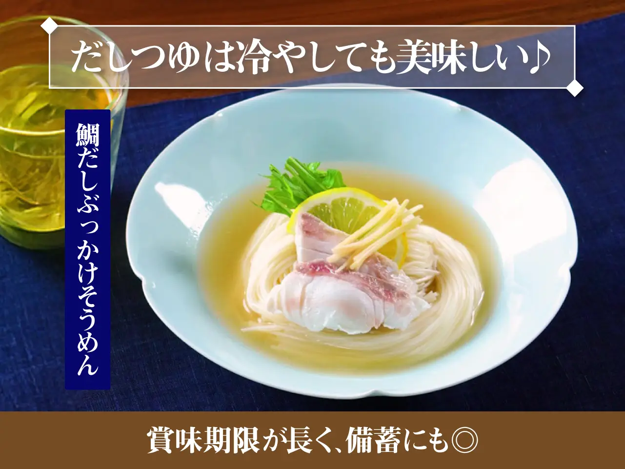 ふわりと広がる鯛の上品な風味に、ほたてと昆布の旨みを重ね、あっさりとしていながらも、しっかりと奥行きのある味わいに仕上げました。